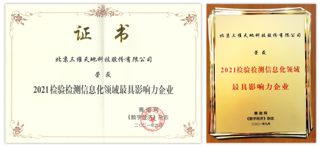 數(shù)智創(chuàng)新 | 三維天地蟬聯(lián)榮獲“2021檢驗(yàn)檢測(cè)行業(yè)信息化最具影響力企業(yè)”