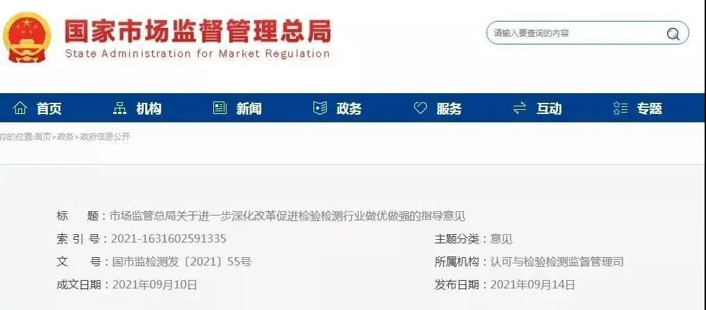 市場監(jiān)管總局關(guān)于進一步深化改革促進檢驗檢測行業(yè)做優(yōu)做強的指導(dǎo)意見