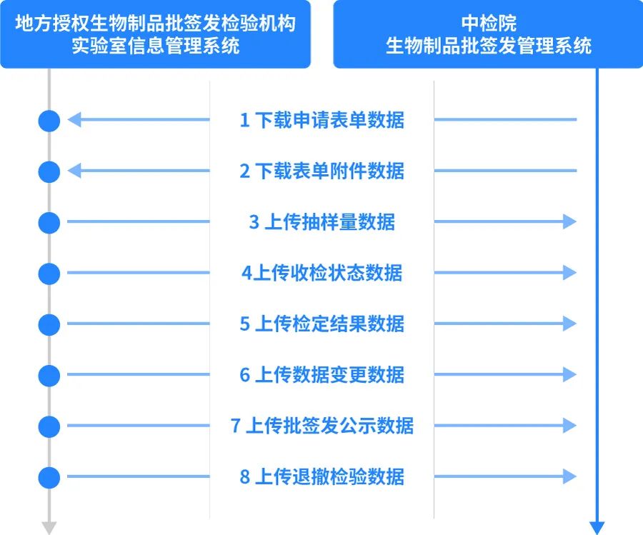 系統(tǒng)支持與中檢院生物制品批簽發(fā)管理系統(tǒng)的直接對接,實現(xiàn)疫苗批簽發(fā)申請表單數(shù)據(jù)及附件信息的自動獲取,實現(xiàn)抽樣量數(shù)據(jù)、收檢狀態(tài)數(shù)據(jù)、檢定結果數(shù)據(jù)、數(shù)據(jù)變更數(shù)據(jù)、批簽發(fā)公示數(shù)據(jù)、退撤檢數(shù)據(jù)的自動上傳,大幅度減少實驗室業(yè)務受理人員、數(shù)據(jù)上報人員對相同信息在不同系統(tǒng)中重復錄入的工作量,確保信息的完整性和一致性,提升批簽發(fā)工作效率,提升批簽發(fā)信息上報及時性。