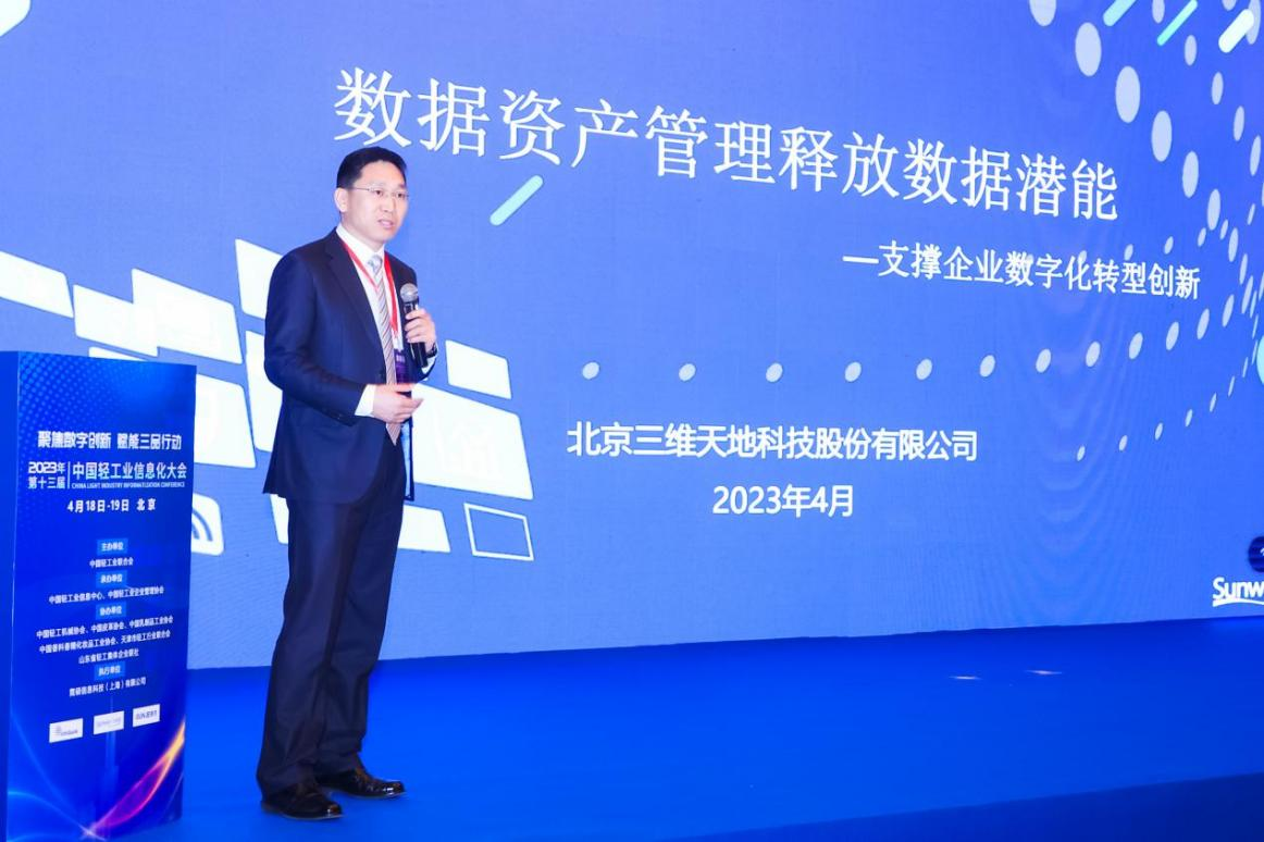 4月18-19日,由中國輕工業(yè)聯(lián)合會主辦,中國輕工業(yè)信息中心、中國輕工業(yè)企業(yè)管理協(xié)會承辦的2023年第十三屆中國輕工業(yè)信息化大會在北京成功召開。北京三維天地科技股份有限公司受邀參會并作主題演講。 三維天地副總裁曹朝輝受邀參會,并作《數(shù)據(jù)資產(chǎn)管理釋放數(shù)據(jù)潛能——支撐企業(yè)數(shù)字化轉(zhuǎn)型創(chuàng)新》主題演講。 他表示,隨著數(shù)據(jù)成為新的生產(chǎn)要素,“數(shù)據(jù)資產(chǎn)化”已經(jīng)成為了企業(yè)發(fā)展的重要組成部分。數(shù)據(jù)要素不僅能提升傳統(tǒng)單一要素生產(chǎn)效率、優(yōu)化傳統(tǒng)要素資源配置效率、替代傳統(tǒng)要素的投入和功能,還能在商機洞察、降本增效、風險管控與輔助決策等方面為企業(yè)數(shù)字化轉(zhuǎn)型保駕護航。但企業(yè)要正確有力地利用好數(shù)據(jù),就需要做好數(shù)據(jù)管理體系的構(gòu)建。 數(shù)據(jù)治理是數(shù)字化轉(zhuǎn)型的根基,是對數(shù)據(jù)資產(chǎn)的管理形式權(quán)力和控制的活動集合,它不僅是一套用工具組合的產(chǎn)品級解決方案,更是從決策層到技術(shù)層,從管理制度到工具支撐,自上而下貫穿整個組織架構(gòu)的完整鏈條,以期通過持續(xù)的評估、指導和監(jiān)督,確保富有成效且高效的數(shù)據(jù)利用,促進組織協(xié)作和結(jié)構(gòu)化決策,為企業(yè)創(chuàng)造價值。