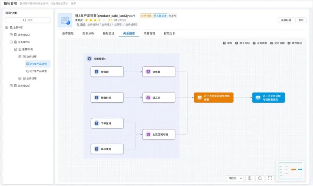 平臺將指標拆分成更細粒度的原子指標、統(tǒng)計周期、業(yè)務限定去管理,提高指標的開發(fā)速度,提升指標的復用性、統(tǒng)一指標的業(yè)務和技術(shù)口徑。如果指標異常,還能實現(xiàn)指標溯源,同時提供了從指標標準到定義到管理的完整能力。