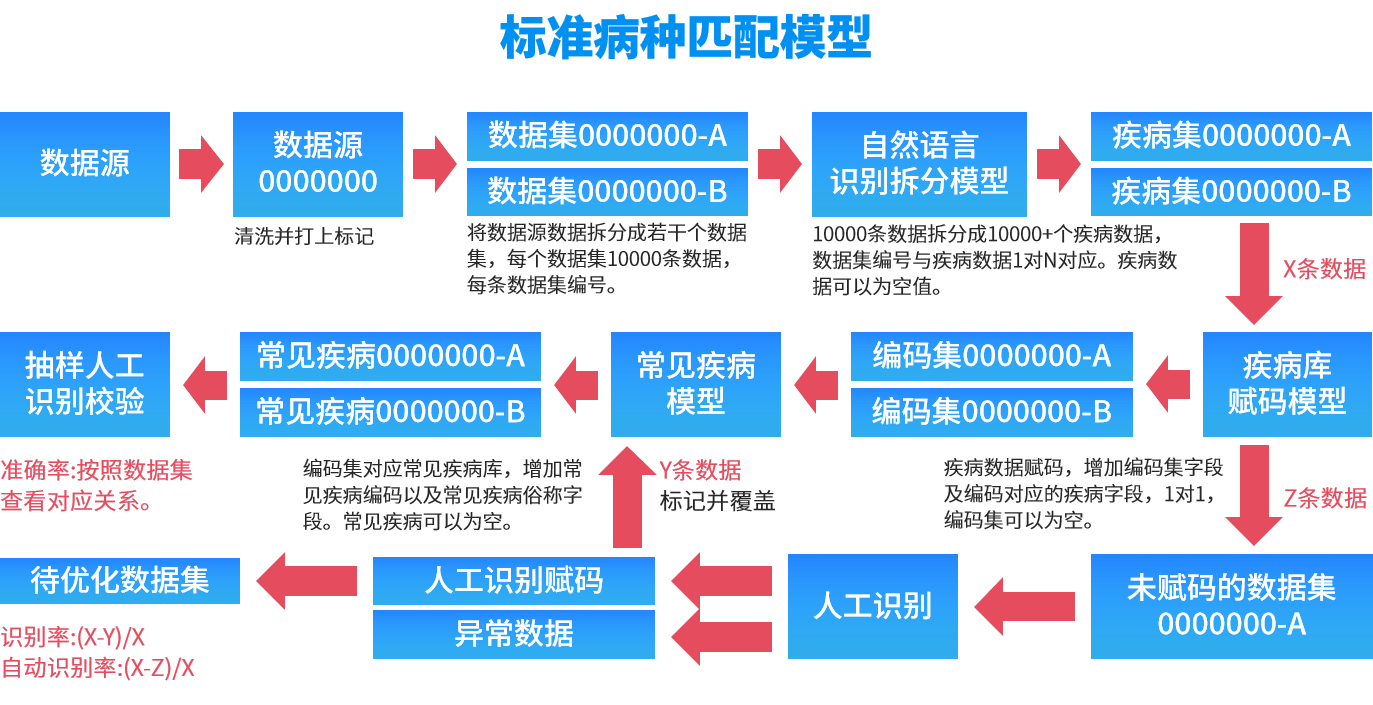 基于本單位覆蓋全國的用戶群體所提供的處方數(shù)據(jù)、外部權威數(shù)據(jù)源提供數(shù)據(jù)基礎,構建企業(yè)內(nèi)部標準病種數(shù)據(jù)及構建標準病種匹配模型。標準病種要進行良好的應用涉及專業(yè)名詞的解讀解析,如何讓日常業(yè)務應用中的病種診斷快速與標準病種匹配,是當前病種應用推廣的核心問題,基于此構建的標準病種匹配模型是一套良好的疾病分類應用,需要由標準疾病分類與標準疾病匹配工具聯(lián)合構成。