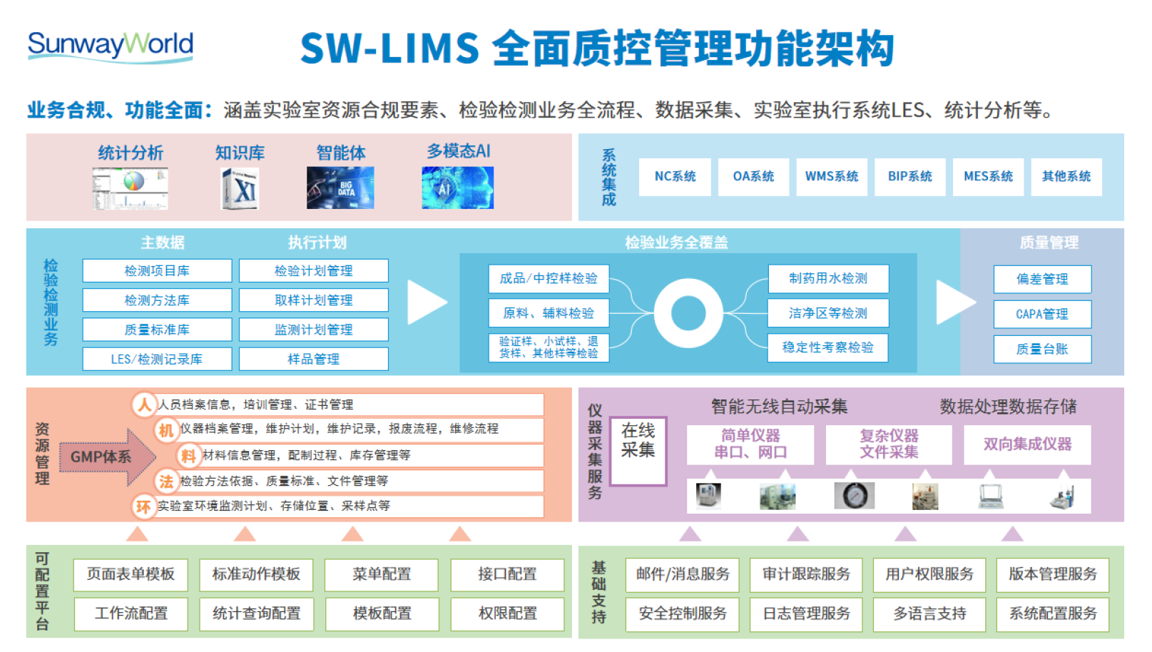 研發(fā)一體化平臺包含了:研發(fā)產(chǎn)品生命周期管理系統(tǒng)(PLM)、科研項目管理系統(tǒng)(RDMS)、科研過程記錄管理(ELN/LES)、臨床前研究合規(guī)系統(tǒng)(GLP)、臨床研究管理系統(tǒng)(GCP)、質(zhì)控實驗室信息管理系統(tǒng)(LIMS)、科學(xué)數(shù)據(jù)管理系統(tǒng)(SDMS)、質(zhì)量管理系統(tǒng)、AI應(yīng)用平臺(SunwayLink)等。以下是主要軟件功能簡介: