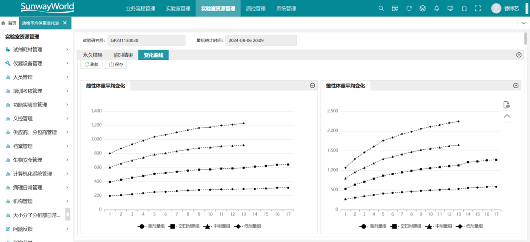 GLP系統(tǒng)聚焦毒理學(xué)、藥代動力學(xué)、藥效學(xué)等臨床前研究流程的管理,支持試驗設(shè)計、動物分組、劑量設(shè)置、給藥記錄、稱重觀察等全過程數(shù)據(jù)采集。系統(tǒng)可自動采集動物體重、攝食、給水等信息,支持項目分層管理與權(quán)限控制。動物信息、籠位記錄、用藥批次可追溯到單體,滿足GLP實驗數(shù)據(jù)可追溯、可驗證的核心要求。與SDMS和ELN集成后,實現(xiàn)數(shù)據(jù)的集中管理、報告生成與GLP合規(guī)審計的閉環(huán),提高藥物臨床前研究的科學(xué)性與合規(guī)能力。