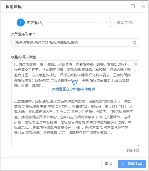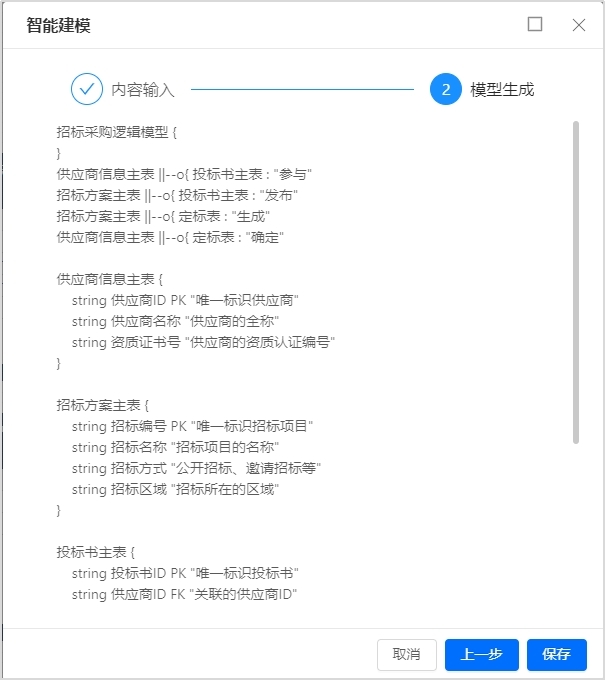 數(shù)據(jù)建模智能體核心邏輯在于“語義理解 + 自動化生成”,NLP 技術(shù)能深度解析業(yè)務(wù)需求的自然語言描述(如 “以供應(yīng)商信息為基礎(chǔ)構(gòu)建招投標(biāo)的業(yè)務(wù)模型”),提取關(guān)鍵實(shí)體(招標(biāo)方案、項(xiàng)目方、供應(yīng)商)、屬性(投標(biāo)類型、投標(biāo)價、時間)與關(guān)系(招標(biāo)項(xiàng)目——供應(yīng)商的歸屬關(guān)系);