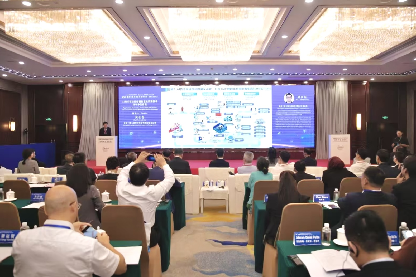在“合格評定”分論壇上,三維天地副總裁吳長征發(fā)表了題為《AI技術(shù)在檢驗檢測行業(yè)及資質(zhì)技術(shù)評審中的應(yīng)用》的主題演講。